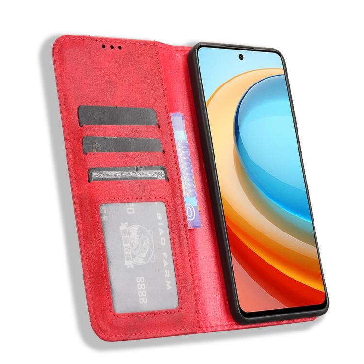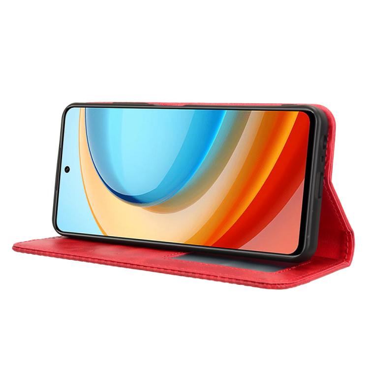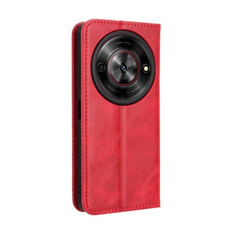 Funda de Cuero ZTE Blade A75 5G Textura Retro Hebilla Magnética (Roja)