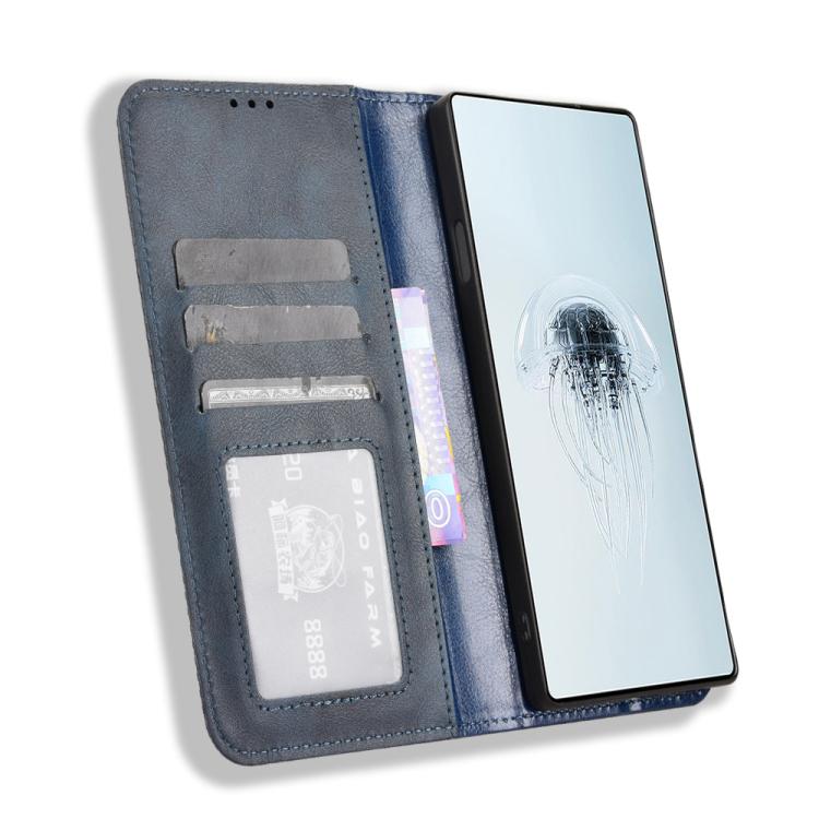 Funda de Cuero ZTE Nubia Red Magic 10 Pro/10 Pro+ Textura Retro Hebilla Magnética (Azul)