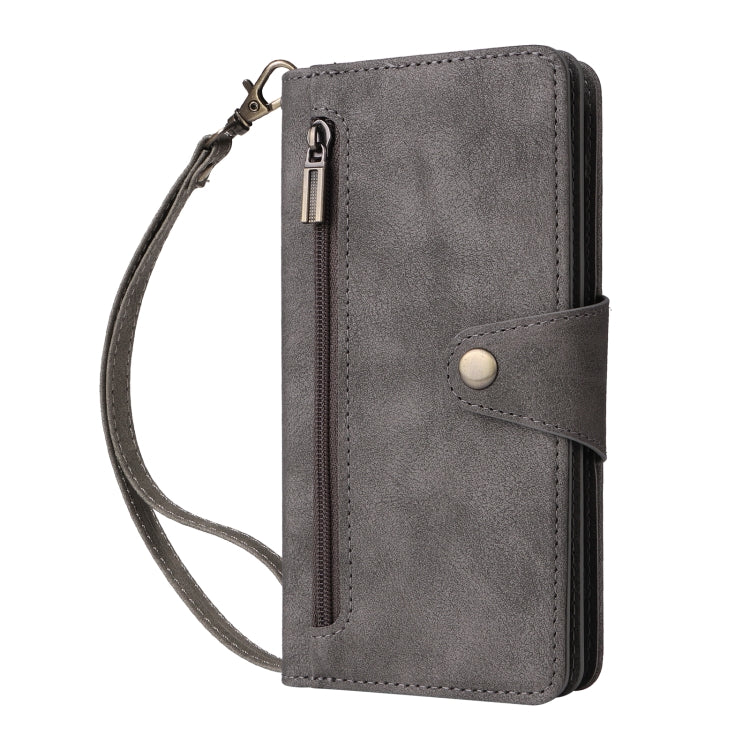 Funda de Cuero con Tres Pliegues y Hebilla de Remache para iPhone 16 (Gris)