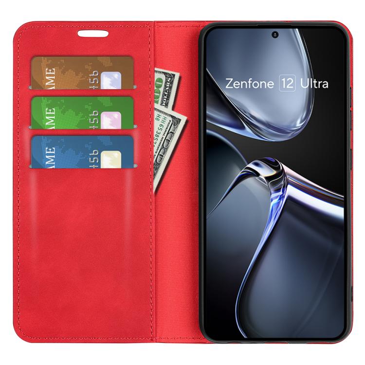 Funda de Cuero con Ventosa Magnética para Asus Zenfone 12 Ultra Retro-Skin (Roja)