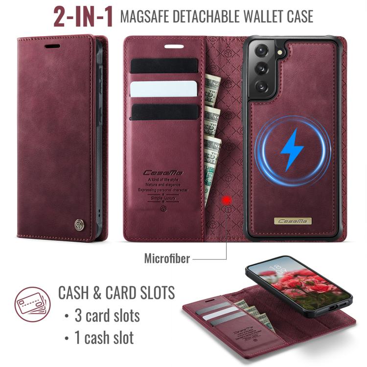 Funda de cuero desmontable CaseMe C49 con bloqueo RFID magnético para Samsung Galaxy S21 5G (roja)