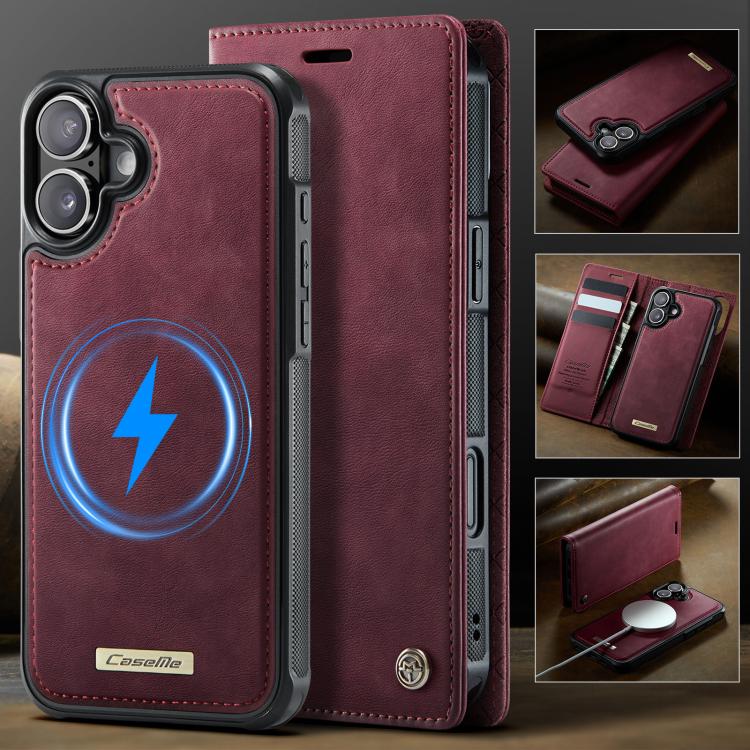 Funda de cuero desmontable CaseMe C49 con bloqueo RFID MagSafe para iPhone 17 (roja)