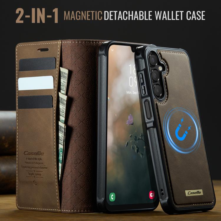 Funda de cuero desmontable con bloqueo RFID magnético CaseMe C49 para Samsung Galaxy A15 (café)