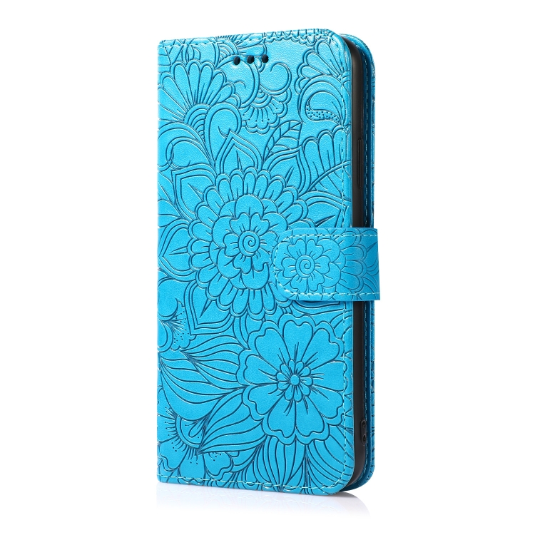 Funda de Cuero Horizontal con Girasol En Relieve para iPhone 13 Pro Skin Feel (Azul)