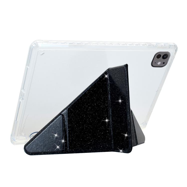 Funda de cuero inteligente con purpurina acrílica transparente plegable en Y para iPad Pro 13 (2024) (negro)