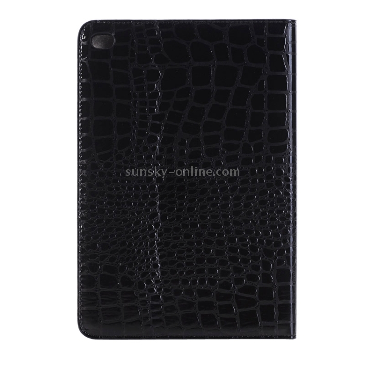 Funda inteligente de cuero Apple iPad Mini 4 con tapa horizontal, textura de cocodrilo, soporte, ranuras para tarjetas y billetera (Negro)