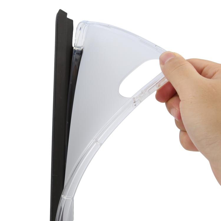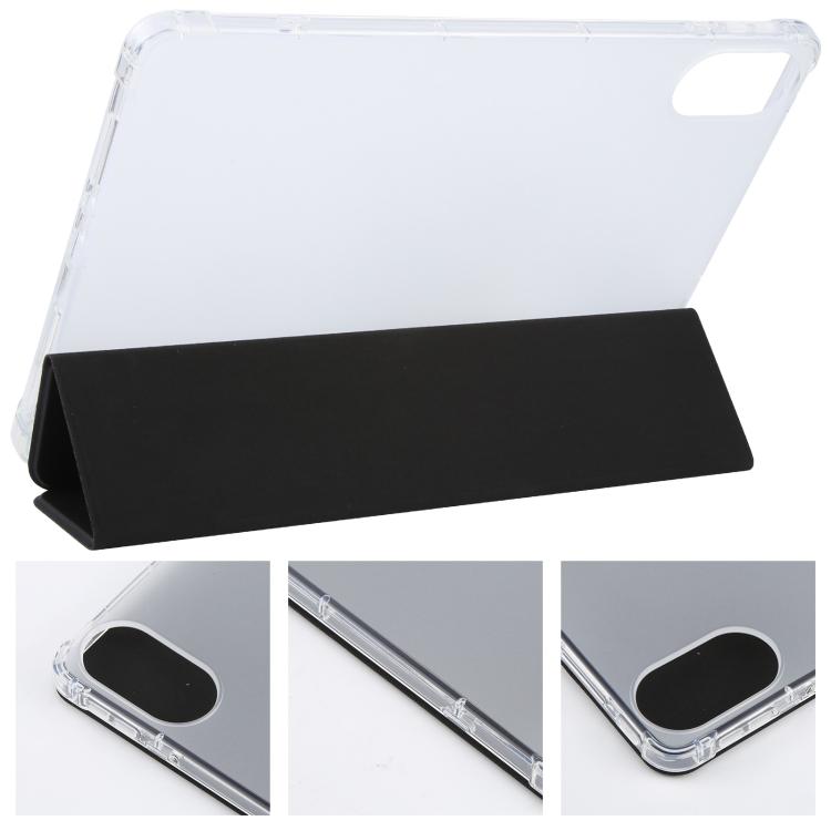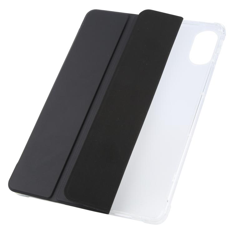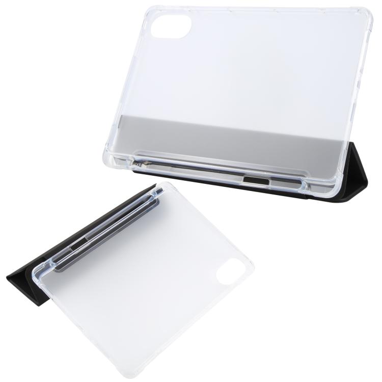 Funda de cuero inteligente de TPU transparente de 3 pliegues para Xiaomi Redmi Pad 2 con ranura para bolígrafo (negra)
