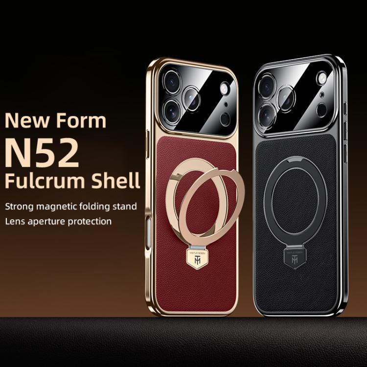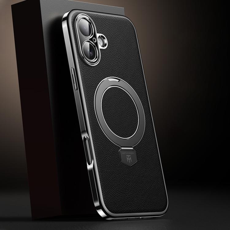 Funda de cuero lisa con soporte MagSafe para iPhone 17 (negra)