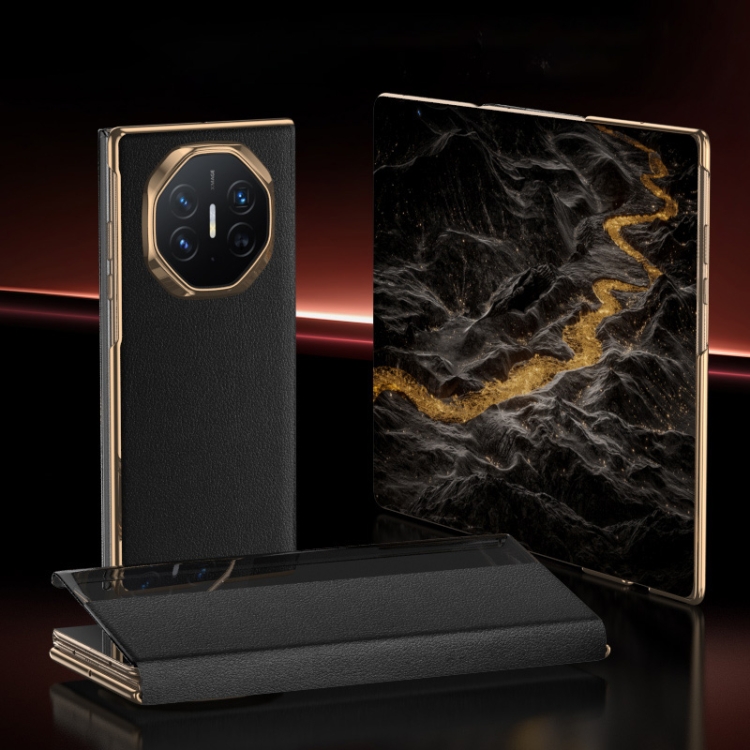 Funda de Cuero con Ventana Lateral Inteligente para Huawei Mate Xt Ultimate (Negra)