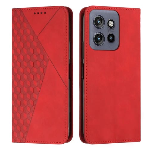 Funda de Cuero Magnética Motorola Edge 50 Neo con Diseño de Diamante y Tacto de Piel (Rojo)