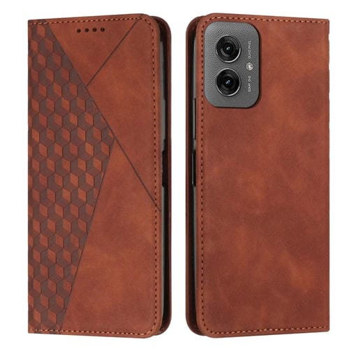 Funda de Cuero Magnética Motorola Moto G55 Diseño Empalme Diamantes (Marrón)