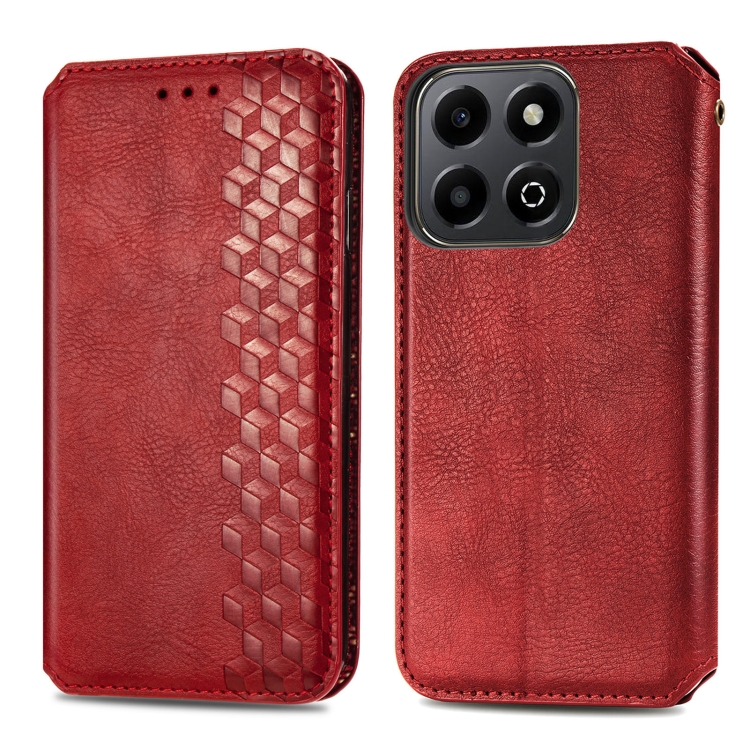 Funda de Cuero Magnética con Rejilla Cúbica para Honor 200 (Rojo)
