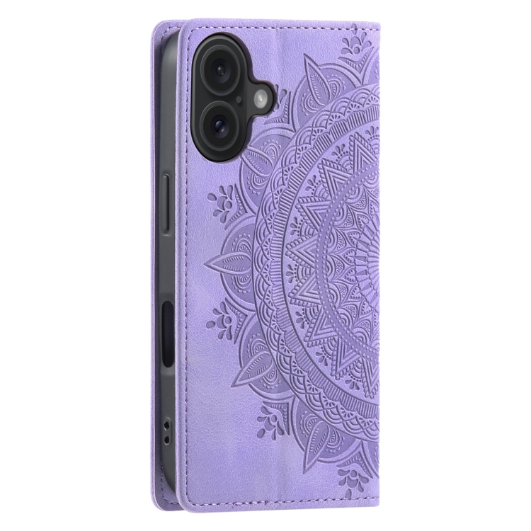 Funda de Cuero Magnética con Relieve Totem para iPhone 16 Plus (Morado)