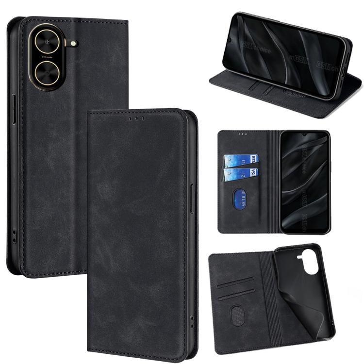 Funda de cuero magnética con textura de piel para Redmi A5 4G (171,7 mm) (negro)