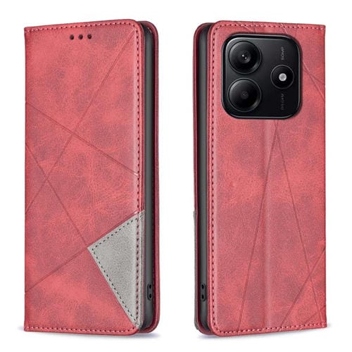 Funda de Cuero Magnética con Textura de Rombos para Redmi Note 14 4G (Rojo)