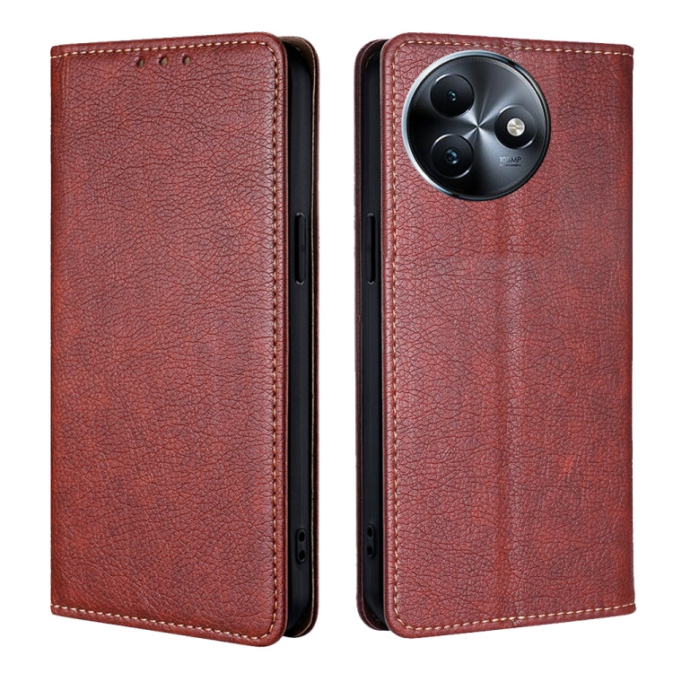 Funda de Cuero Magnética Itel S24 4G con Acabado Brillante (Marrón)