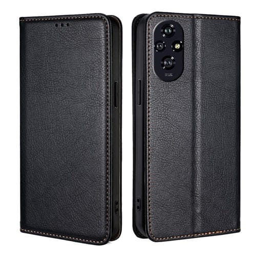 Funda de Cuero Magnética para Honor 200 5G con Acabado Brillante y Aceite Sólido (Negro)