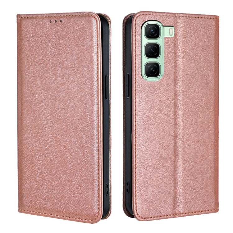 Funda de Cuero Magnética para Infinix Hot 50 5G con Acabado Brillante (Oro Rosa)