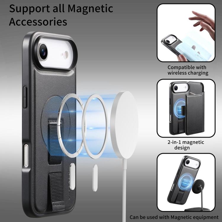Funda de cuero MagSafe con correa de agarre para el dedo para iPhone Air (negra)