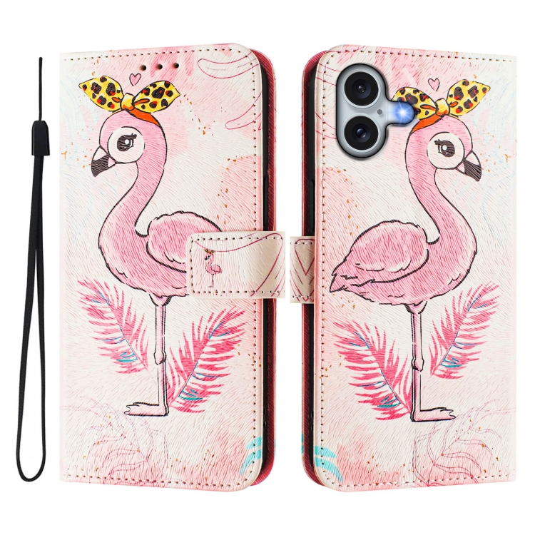Funda de Cuero para iPhone 16 Diseño de Dibujo Artístico (Flamenco)