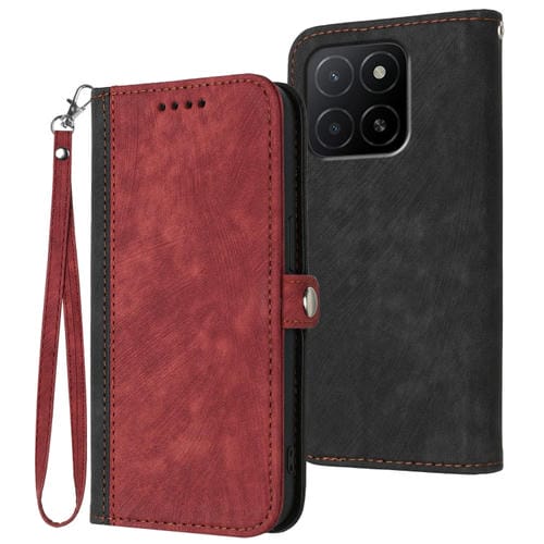 Funda de Cuero para Honor X5B y X5B Plus con Correa de Mano y Doble Pliegue con Hebilla (Rojo)