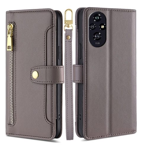 Funda de Cuero para Honor 200 5G con Cremallera y Textura de Oveja (Gris)
