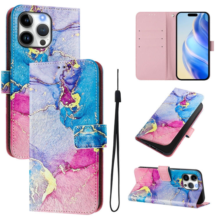 Funda de Cuero para Teléfono iPhone 16 Pro Max Patrón Dibujo Artístico (Mármol Colorido)