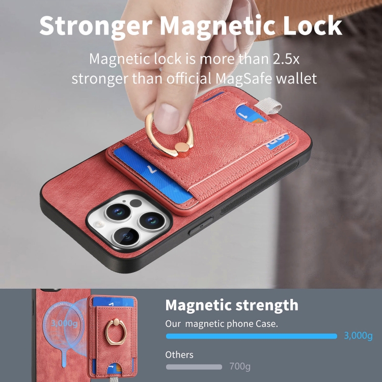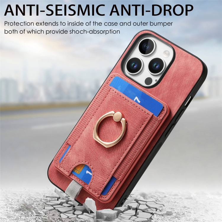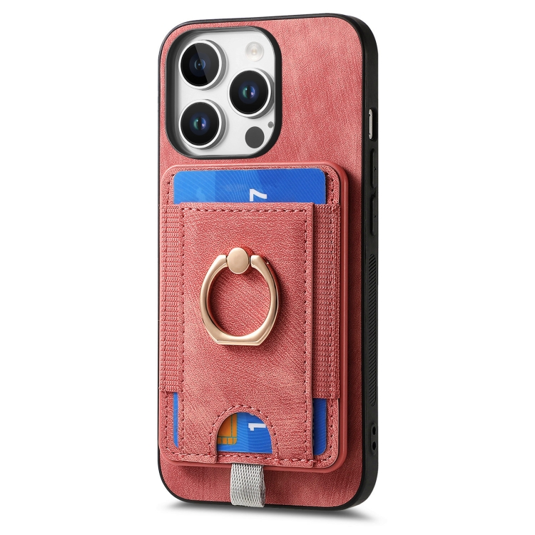 Funda de Cuero para Teléfono iPhone 16 Pro Max con Tarjetero Magnético Divisible Retro (Rosa)