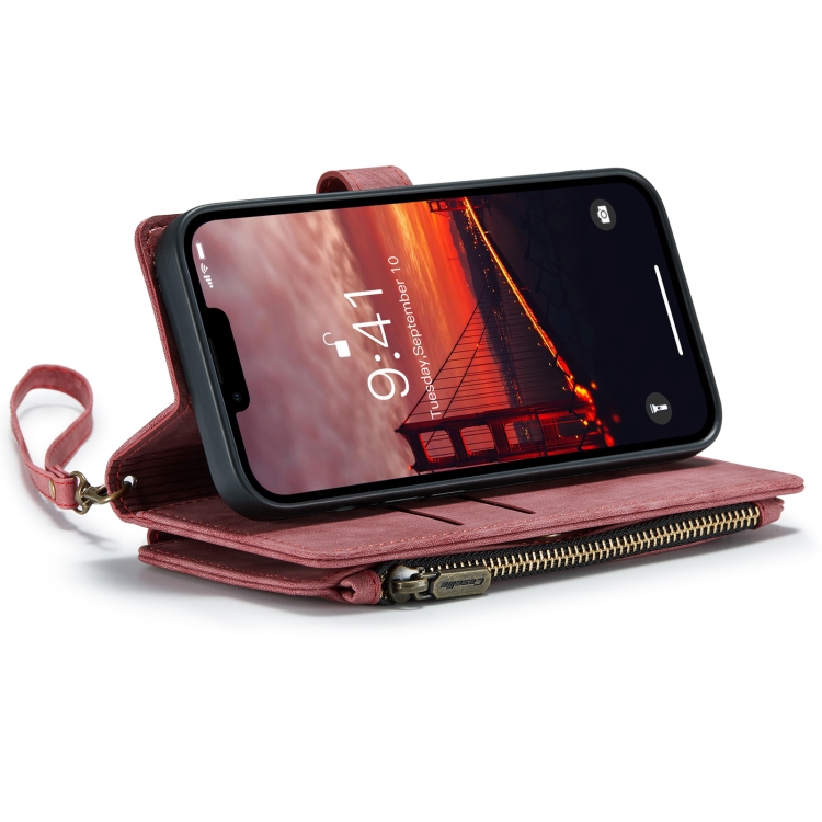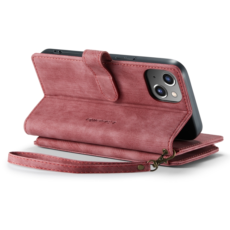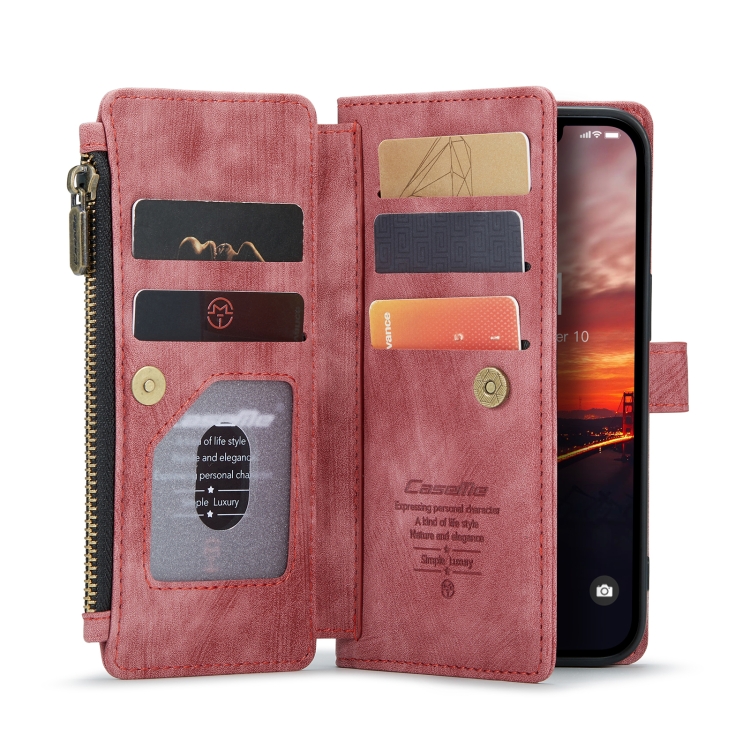 Funda de Cuero Caseme C30 para iPhone 14 Multifuncional (Rojo)