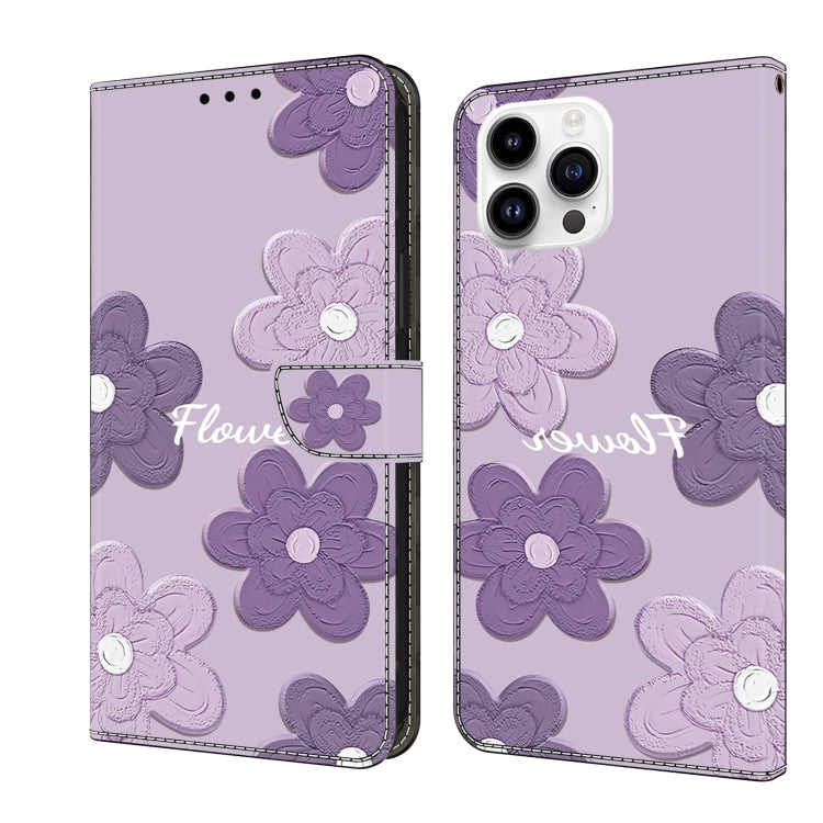 Funda de Cuero Pintada a Mano para iPhone 16 Pro con Flores (Morado Oscuro)