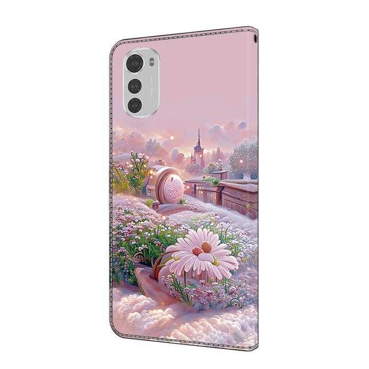 Funda de Cuero Pintada a Mano para Motorola Moto E32 (Jardín)