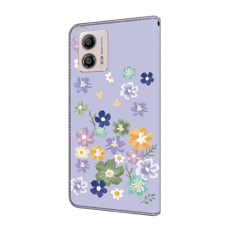 Funda de Cuero Pintada a Mano para Motorola Moto G53 5G (Floral Morado)