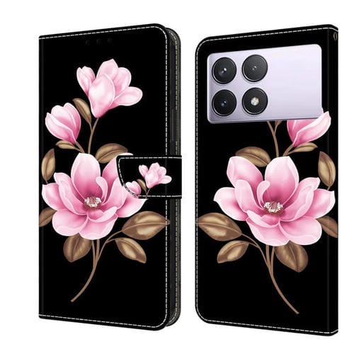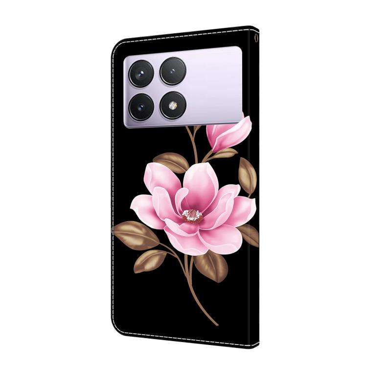 Funda de Cuero Pintada a Mano para Redmi K70E (Flores Negras)