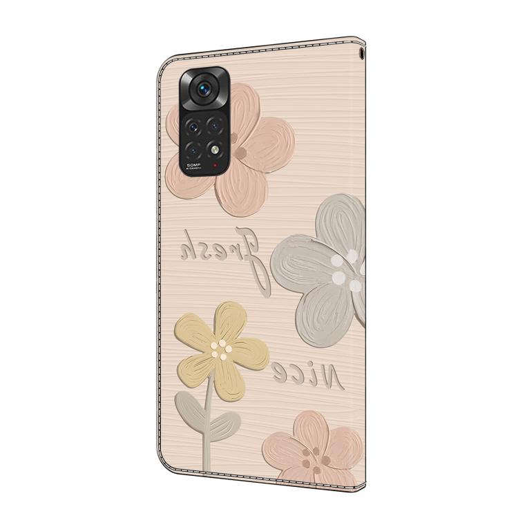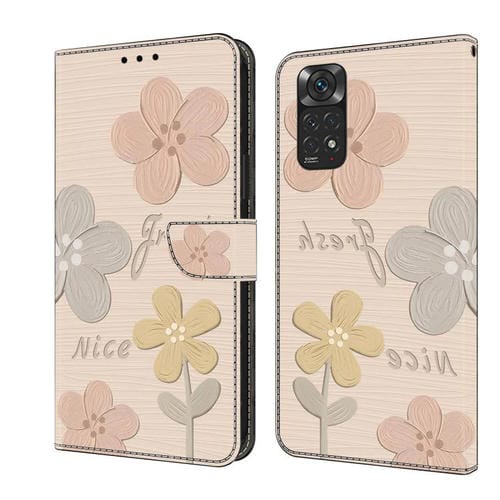 Funda de Cuero Pintada a Mano para Redmi Note 11/11S (Flores Beige)