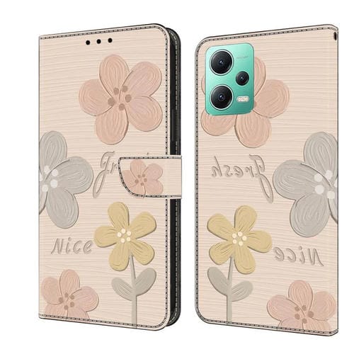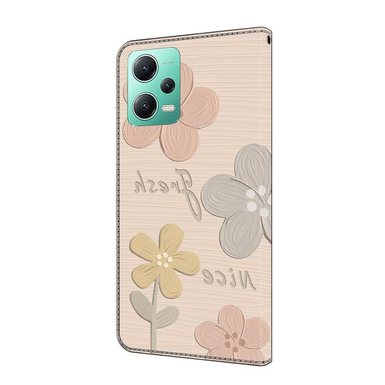 Funda de Cuero Pintada a Mano para Redmi Note 12 5G Global Fresh (Flores Beige)
