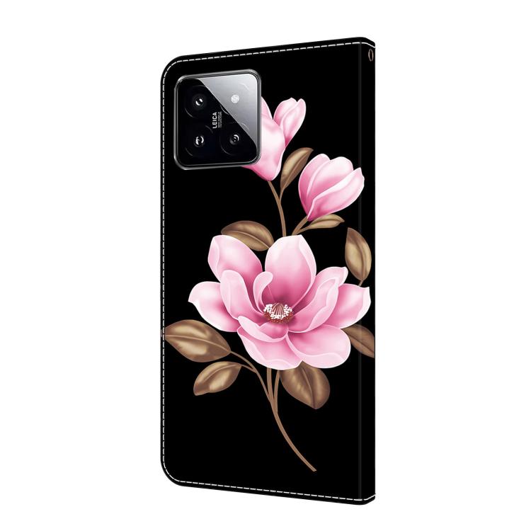 Funda de Cuero Pintada a Mano para Teléfono Xiaomi 14T Pro (Flores Negras)