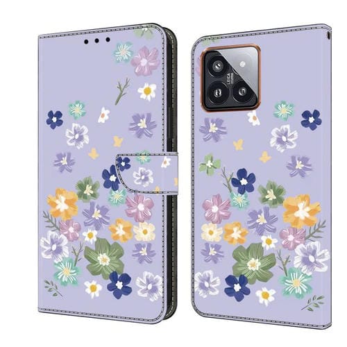 Funda De Cuero Pintada Fresca Para Teléfono Xiaomi 14 Pro (Floral Morado)