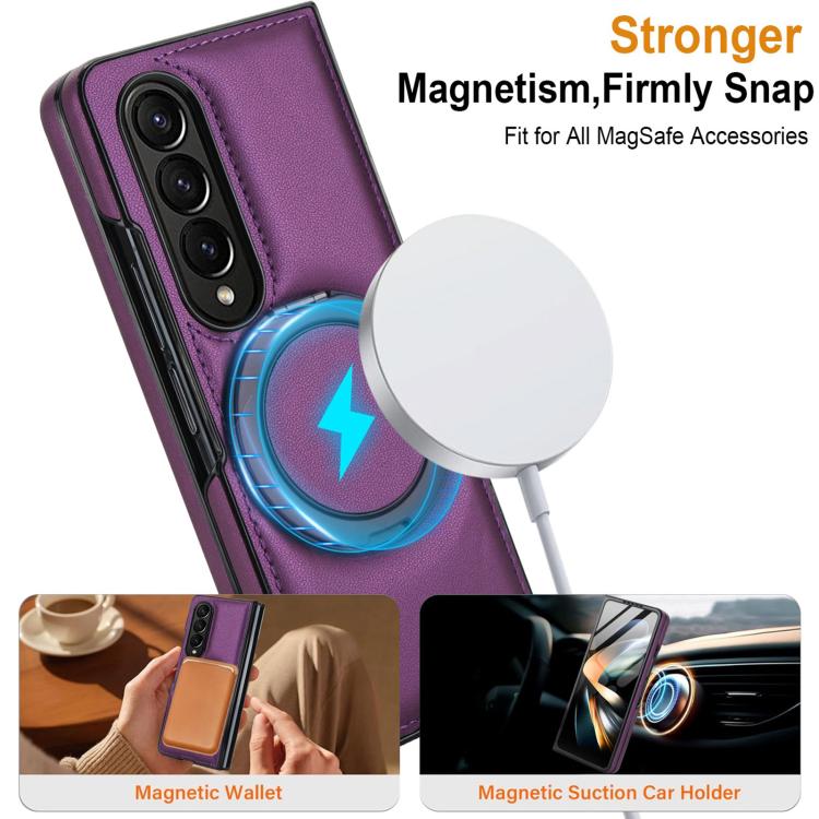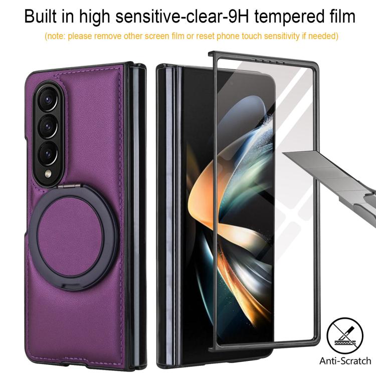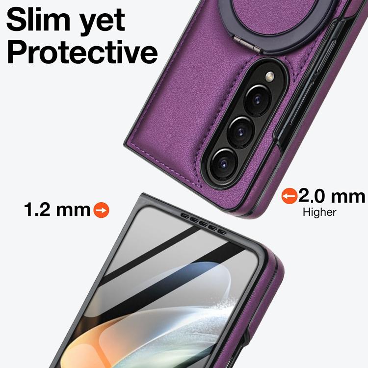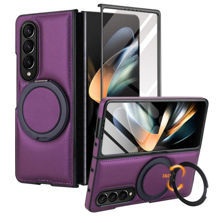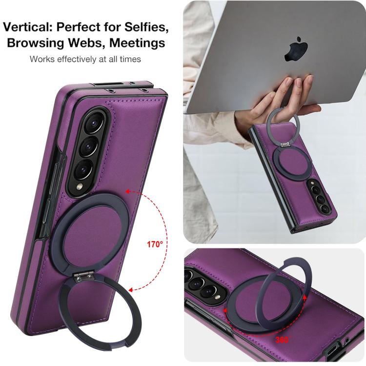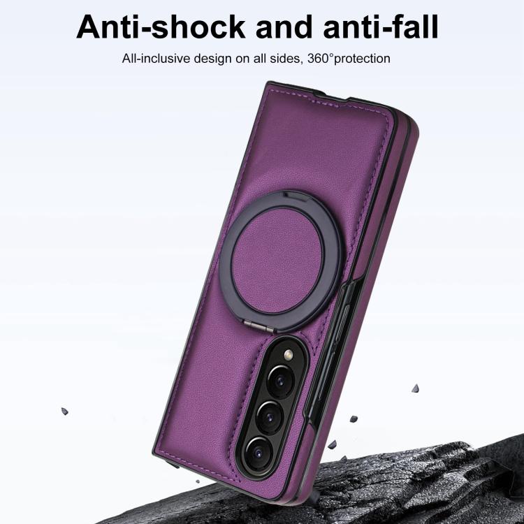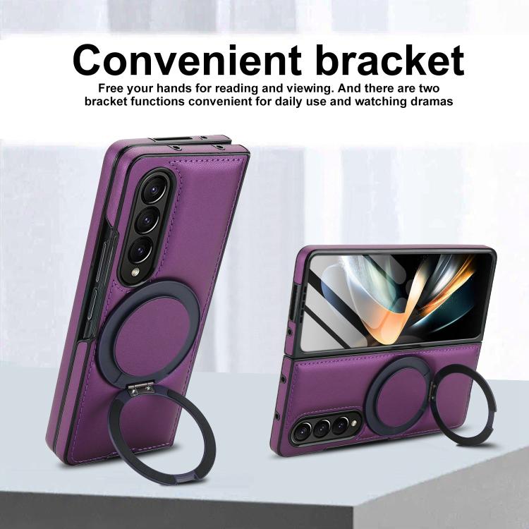 Funda de cuero plegable con soporte giratorio y película MagSafe para Samsung Galaxy Z Fold3 5G (morado oscuro)