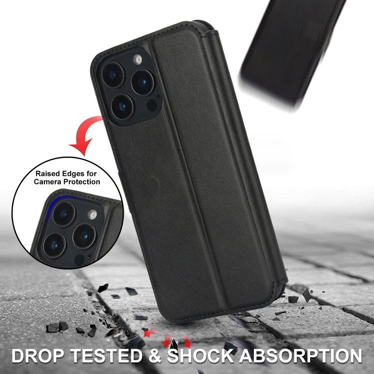 Funda para iPhone 16 Pro de Cuero Pu y TPU a Prueba de Golpes (Negro)