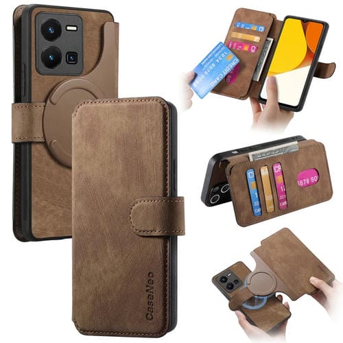 Funda de Cuero Retro Antirrobo con Rfid y Magsafe para Vivo Y35 5G (Marrón)