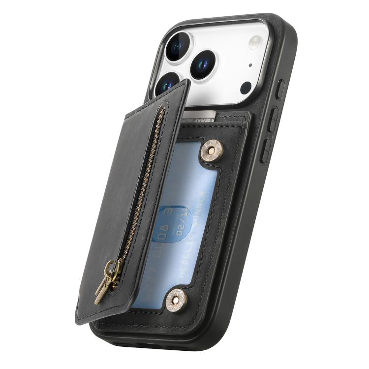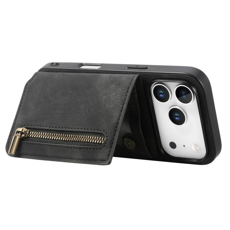 Funda de cuero retro con cremallera para iPhone 17 Pro (negra)