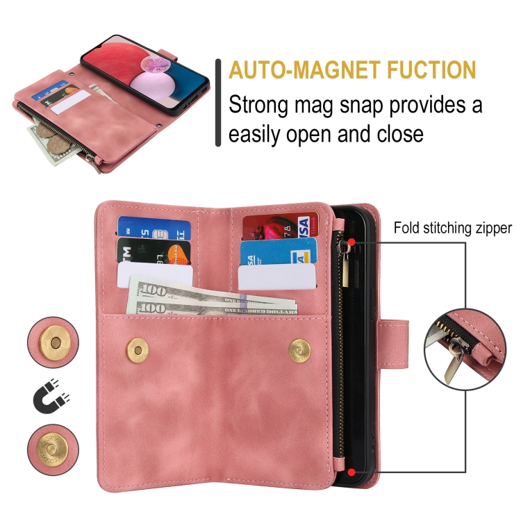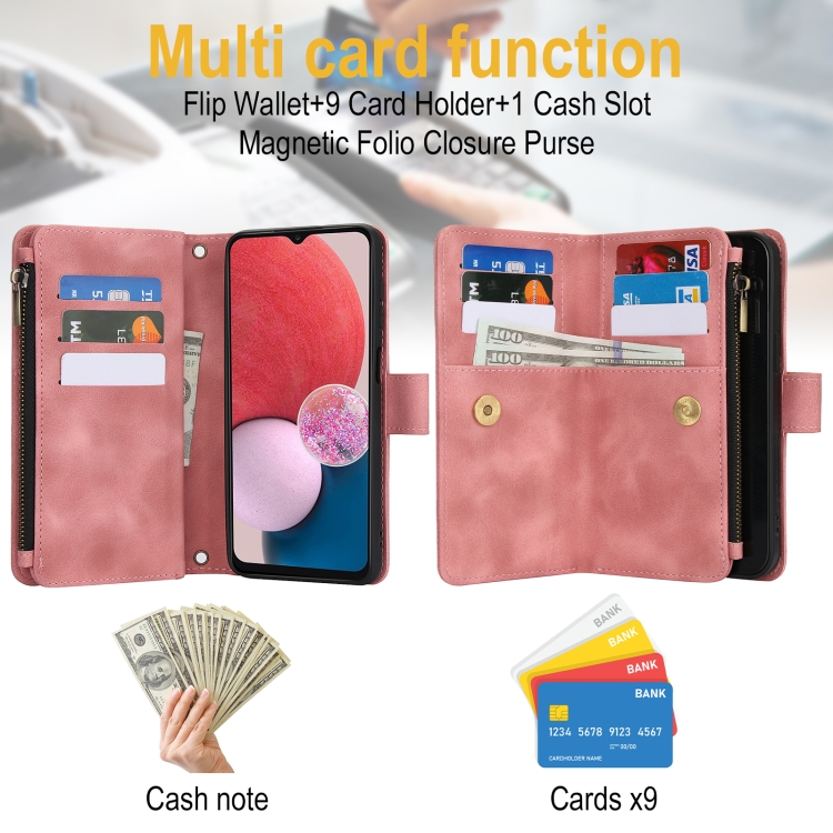 Funda Cuero Rfid Samsung Galaxy A13 4G/5G Dream con Cremallera 9 Tarjetas Cordón (Oro Rosa)