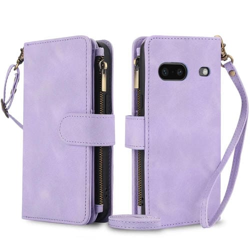 Funda de Cuero Rfid con Cremallera y Cordón para Google Pixel 7 Dream con 9 Tarjetas (Morado)
