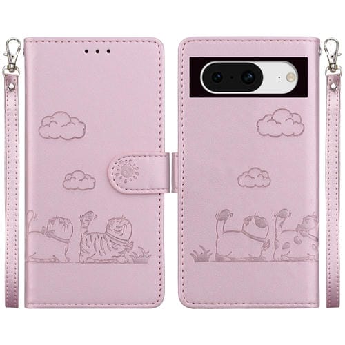 Funda de Cuero Rfid para Google Pixel 8 con Diseño de Gatos Lindos (Oro Rosa)