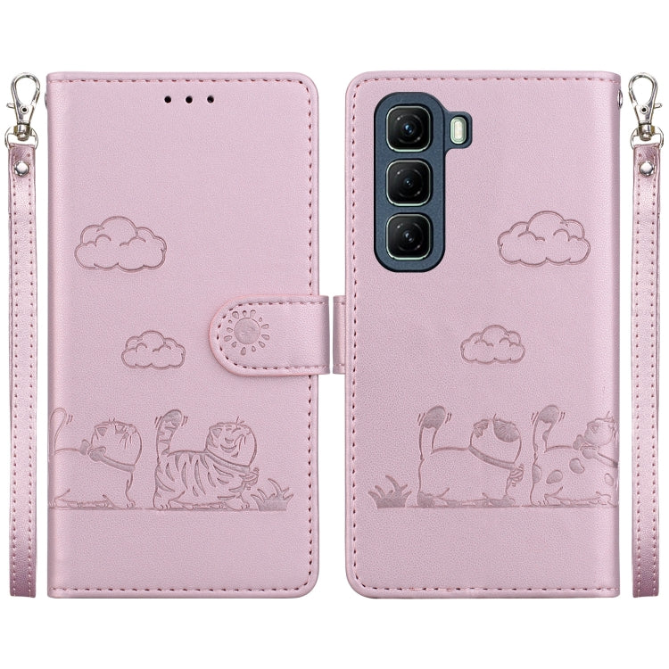 Funda de Cuero Rfid para Infinix Hot 50 5G con Diseño de Gatos (Oro Rosa)