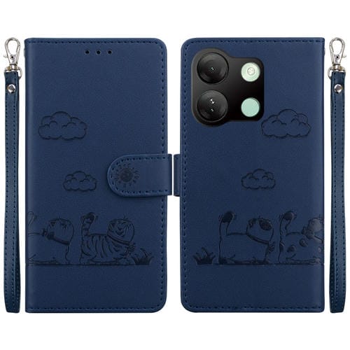 Funda de Cuero Rfid para Infinix Smart 7 HD con Diseño de Gatos (Azul)