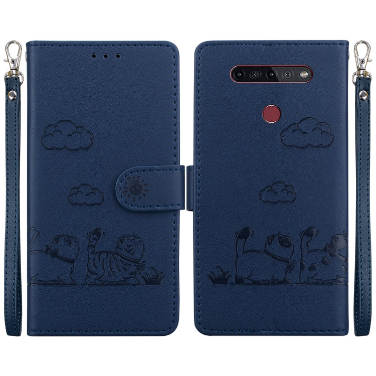 Funda de Cuero Rfid para LG K41S/K51S con Diseño de Gatos (Azul)