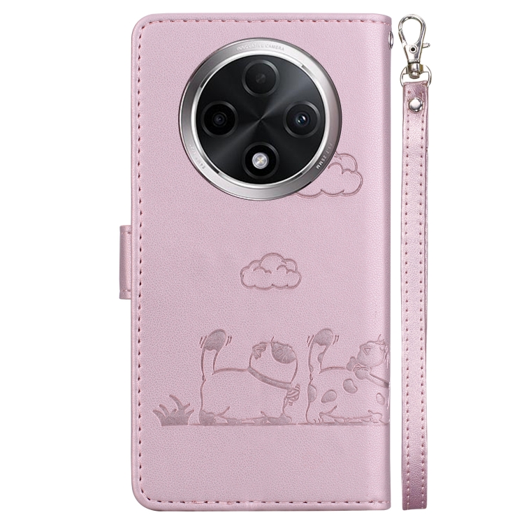 Funda de Cuero Rfid con Diseño de Gatos para Oppo A3 Pro 5G Global (Oro Rosa)
