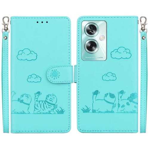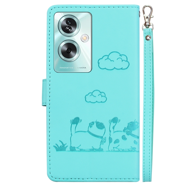 Funda de Cuero Rfid con Diseño de Gatos para Oppo A79 5G Global (Verde)