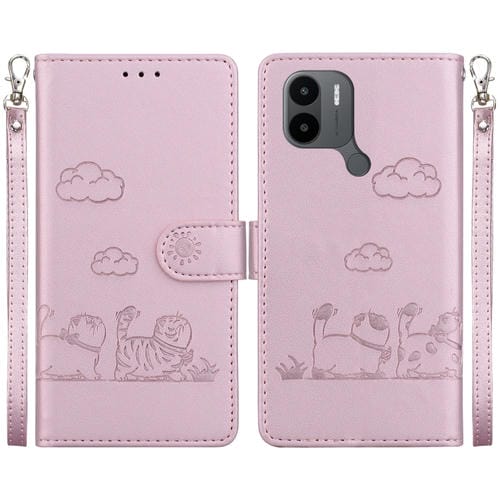Funda de Cuero Rfid con Diseño de Gatos para Redmi A1+ 4G Global (Oro Rosa)